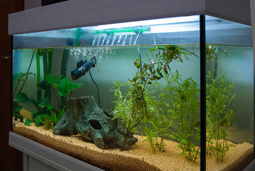 The aquarium laboratory creates an access to a real aquarium located in the University of Deusto. On it, it is possible to feed the fish, turn on and off the lights, and, if the submarine is in the water and it is charged, control the submarine. The problem is that most of the time, the submarine is out of battery so we only put it in the fishtank certain days.
