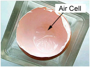 Podczas inkubacji, w wyniku oddzielana tych dwóch błon tworzy się komora powietrzna umiejscowiona w szerszym końcu jaja.