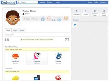 Учениците могат да се логват в групата, създадена от техния учител без регистрация.Всичко, което те трябва да направят е да кликнат на бутона „Аз съм ученик” на началната страница на Edmodo и да впишат 6-цифрения код, който им е предоставен от техния учител.След като се логнат, те могат да модифицират профила си, да впишат своите и-мейл адреси, да качат своя снимка и да направят много други настройки. Най-интересната от тях е,че те могат да идентифицират ученическия статус (напр. визуален, вербален) и да изберат специфична област като предмет за изучаване. След като са се логнали, учениците получават също код, който могат да използват и за да поканят своите родители в групата.
