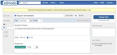 Лесно могат да се направят куизи и тестове с въпроси за учениците.Има възможност за избор от четири вида въпроси: с повече от един отговор, с „да” или „не”, с кратки отговори и с попълване в празните полета. Въпросите могат да бъдат компилирани по такъв начин,че да могат да се използват повторно или да бъдат модифицирани за други групи. Финалните куизи могат да се появяват на панела за съобщения към групата както заедно с другите задания, така и с опция за изпращане към определен ученик, което означава, че системата поддържа възможности за диференциране.
