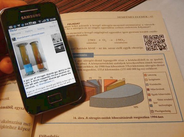 Traditional paper-based textbooks and workbooks are greatly limited in their ability to transfer multimedia information. QR codes allow you to complement a textbook text with extra content that cannot be displayed in the specific environment. In a chemistry book, for instance, you can attach an Internet link to a reaction to display a video demonstrating the process, a link to an animation demonstrating the use of a lab equipment or even a short text description. In a biology textbook you can attach additional photos or even 3D models to a specific animal or habitat. The solution is the same with all textbooks, i.e. the external QR codes pointing to the digital content need to be inserted next to the traditional information to allow students to view that alternative content using a camera and suitable software.