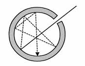 .Systemem o najbardziej zbliżonych właściwościach do ciała doskonale czarnego jest wnęka izotermiczna (Rysunek 6), której powierzchnia ma jednolitą temperaturę. Kiedy promieniowanie wchodzi downęki przez mały otwór, ulega ono wielokrotnym odbiciom w jej wewnętrznych ściankach. Po kilku odbiciach promieniowanie zostanie prawie całkowicie wchłonięte przez wnękę.