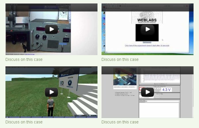Oto przykład eksperymentów zdalnych OLAREX. Są tu 4 filmy, które uczniowie powinni obejrzeć, a następnie muszą omówić każdy przypadek badawczy (Rys. 1). Nauczyciel może zadawać różne pytania, odpowiadać na pytania uczniów lub przesyłać zadania.