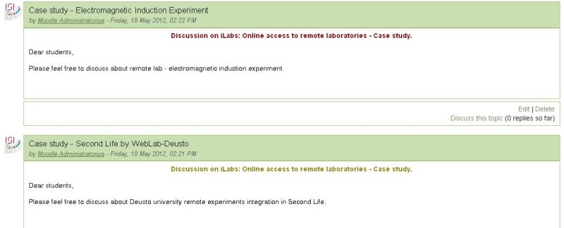 Inny przypadek jest wtedy, gdy kurs przygotowany jest przez 2-3 lub więcej nauczycieli, wtedy każdy nauczyciel może mieć swoje własne forum i uczniowie mogą dyskutować z każdym nauczycielem indywidualnie.