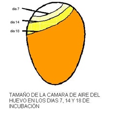 Observando las imágenes mediante el ovoscopio en los días 7, 14 y 18 del desarrollo embrionario, podemos establecer si la cámara de aire que se encuentra en el interior del huevo va aumentando o no, lo que significará si el huevo sigue su proceso de desarrollo o por el contario se trata de un huevo claro, es decir, donde el embrión ha dejado de desarrollarse. Si se pudiese pesar el huevo en esos instantes se vería que el peso del huevo es capaz de disminuir hasta un 12%.