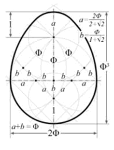 donde Rl y Rm serían los radios ortogonales del huevo.