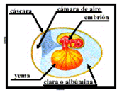 El huevo sometido al calor propio de la incubación, que se desarrolla en torno a los 37.7 ºC, adquiere vida y se convierte en embrión; éste va creciendo, y lo que en un principio era un pequeño punto insignificante va adquiriendo forma; el embrión se va nutriendo de las sustancias que contiene la yema; a medida que el futuro ser va creciendo, va extendiéndose primero por la yema, y después por la clara hasta abarcar la totalidad del interior (Figure 5). Una vez formado el polluelo, sirviéndose del diamante (minúscula protuberancia córnea situada en el extremo de la mandíbula superior) rompe el cascarón. A los pocos días de la eclosión desaparece el diamante.