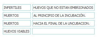 OVOSCOPIO: Es un haz de luz que atraviesa el huevo, sin romperlo, pudiéndose observar lo que sucede en su interior. Así destacamos las siguientes categorías: