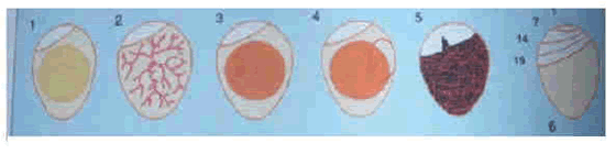 (1) Ninguna señal de desarrollo = huevo no fértil.
