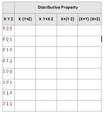 Exercise 2. Show the main theorems used in the perfect induction method. This is, complete the corresponding columns in the truth table and make sure that they are identical.
