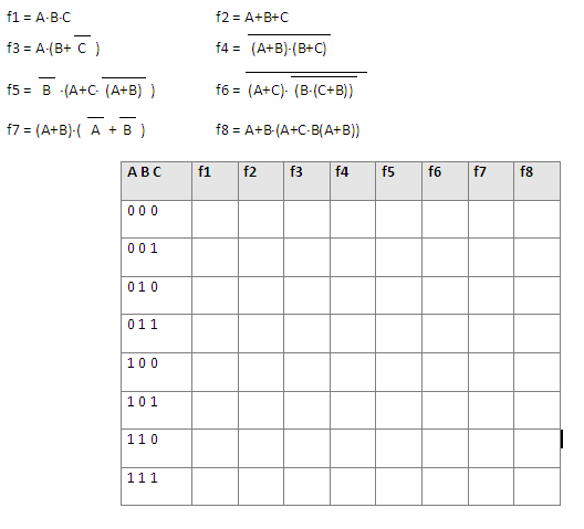 Exercise1. Obtain in the truth table the result column of any of these functions:
