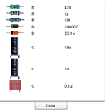 - Ahora que ya ves el área de trabajo - breadboard y debes hacer clic en el signo "+" y luego hacer clic dos veces en cada una de las resistencias de 1K y 10K (así tendremos 2 resistencias de cada tipo).