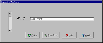 Una vez arrancado BOOLE y elegido Sistema Combinacional, daremos un nombre al sistema e indicaremos su número de variables de entrada y salida y su nombre. Seguidamente activaremos la opción Expresión Booleana. En ella escribiremos cualquier expresión booleana con OR, AND, NOT y XOR (ver Ayuda en pantalla). Al pulsar evaluar la función será procesada, finalmente activamos Salir.
