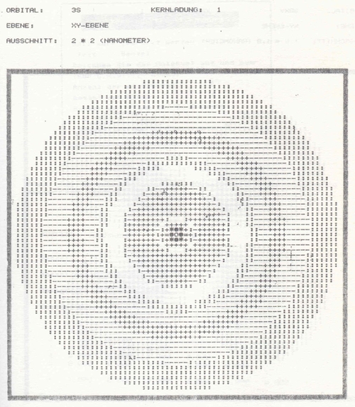 La virtualización desde la década de 1980: basada en caracteres de visualización de un orbital atómico (fuente: Kappenberg, 1988, p 195.)